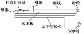 ③ 在②的基礎(chǔ)上,某同學(xué)用天平稱量滑塊的質(zhì)量為M;往沙桶中裝入適量的細(xì)沙,用天平稱出此時(shí)沙和沙桶的總質(zhì)量為m;讓沙桶帶動(dòng)滑塊加速運(yùn)動(dòng)。用打點(diǎn)計(jì)時(shí)器記錄其運(yùn)動(dòng)情況,在打點(diǎn)計(jì)時(shí)器打出的紙帶上取兩點(diǎn),測(cè)出這兩點(diǎn)的間距L和這兩點(diǎn)的速度大小v1與v2(v1<v2)。則本實(shí)驗(yàn)最終要驗(yàn)證的數(shù)學(xué)表達(dá)式為_(kāi)________________。(用題中的字母表示實(shí)驗(yàn)中測(cè)量得到的物理量)