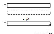一平行板電容器充電后與電源斷開,正極板接地,在兩極板間有一負(fù)電荷(電量很小,不影響電場分布)固定在P點(diǎn),如圖所示, U表示電容器的電壓,EP表示負(fù)電荷在P點(diǎn)的電勢能,若保持正極板不動(dòng),將負(fù)極板從虛線所示的位置上移到圖中實(shí)線位置,則U________(填變大、變小或者不變),EP________(填變大、變小或者不變)。
