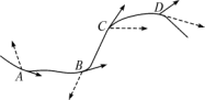如圖,物體做曲線運動,A、B、C、D是其軌跡上的四點,如果用實線箭頭表示物體在該點的速度,虛線表示物體在該點時受到的合外力,你認為圖中哪些點的標(biāo)示是明顯錯誤的