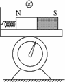 如圖所示,臺秤上放一光滑平板,其左邊固定一擋板,一輕質(zhì)彈簧將擋板和一條形磁鐵連接起來,現(xiàn)在磁鐵上方中心偏左位置固定一導(dǎo)體棒,當導(dǎo)體棒中通以如圖所示的電流后,以下說法正確的是