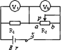 D.P向b移動,V1示數改變量的絕對值大于V2的示數改變量的絕對值