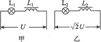 兩只完全相同的燈泡L1和L2分別與相同的電感串聯(lián),組成如圖所示的甲、乙兩個(gè)相同的部分電路.現(xiàn)在甲電路兩端加恒定電壓U,L1燈發(fā)光;而在乙電路兩端加最大電壓為
