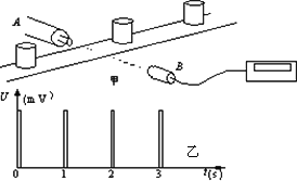 利用光敏電阻制作的光傳感器,記錄了傳送帶上工件的輸送情況,如圖甲所示為某工廠成品包裝車間的光傳感記錄器,光傳感器B能接收到發(fā)光元件A發(fā)出的光,每當(dāng)工件擋住A發(fā)出的光時(shí),光傳感器輸出一個(gè)電信號(hào),并在屏幕上顯示出電信號(hào)與時(shí)間的關(guān)系,如圖乙所示,若傳送帶始終勻速運(yùn)動(dòng),每兩個(gè)工件間的距離為0.2 m,則傳送帶運(yùn)動(dòng)的速度是________m/s,該傳送帶每小時(shí)輸送________個(gè)工件