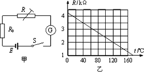 廣泛應(yīng)用于室內(nèi)空調(diào)、電冰箱和微波爐等家用電器中的溫度傳感器,是利用熱敏電阻隨溫度變化而變化的特性工作的.在圖甲中,電源的電動(dòng)勢(shì)E=9.0 V,內(nèi)電阻不可忽略;G為內(nèi)阻不計(jì)的靈敏電流表;R0為保護(hù)電阻;R為熱敏電阻,其電阻值與溫度變化關(guān)系如圖乙的R-t圖象所示.則(1)熱敏電阻R隨攝氏溫度t變化的關(guān)系式為R=________kΩ;(2)閉合電鍵S,當(dāng)R的溫度等于80℃時(shí),熱敏電阻R的阻值為________kΩ;(3)若R的溫度等于40℃時(shí),電流表示數(shù)I1=2.25 mA,則當(dāng)電流表的示數(shù)I2=3.6 mA時(shí),熱敏電阻R的溫度是________攝氏度.