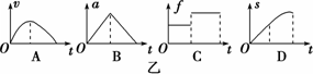 如圖甲所示,物體沿斜面由靜止滑下,在水平面上滑行一段距離后停止,物體與斜面和水平面間的動摩擦因數(shù)相同,斜面與水平面平滑連接.圖乙中v、a、f和s分別表示物體速度大小、加速度大小、摩擦力大小和路程.圖乙中正確的是________