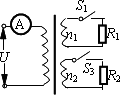 如圖所示,理想變壓器有兩個副線圈,匝數(shù)分別為n1和n2,所接負(fù)載4R1=R2.當(dāng)只閉合S1時,電流表示數(shù)為1 A,當(dāng)S1和S2都閉合時,電流表示數(shù)為2 A,則n1∶n2為________.