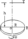 如圖所示,在半徑為R的水平圓盤的正上方高h處水平拋出一個小球,圓盤做勻速轉(zhuǎn)動,當(dāng)圓盤半徑OB轉(zhuǎn)到與小球水平初速度方向平行時,小球開始沿OB方向拋出,要使小球只與圓盤碰撞一次,且落點為B,求和圓盤轉(zhuǎn)動的角速度________.