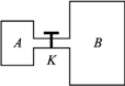 如圖所示,A容器容積為10 L,里面充滿10大氣壓的空氣,B容器是真空,打開活塞栓K把A中的空氣放出一部分到B中去,當A容器內(nèi)壓強降到4個大氣壓時,把活塞栓關(guān)閉,這時B容器內(nèi)的壓強是3個大氣壓,求B容器的容積(設(shè)溫度不變)