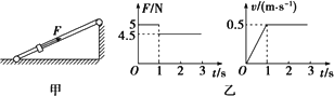 如圖甲所示,足夠長的固定光滑細桿與地面成一定傾角,在桿上套有一個光滑小環(huán),沿桿方向給環(huán)施加一個拉力F,使環(huán)由靜止開始運動,已知拉力F及小環(huán)速度v隨時間t變化的規(guī)律如圖乙所示,重力加速度g取10 m/s2.則以下判斷正確的是