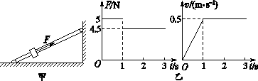 如圖甲所示,足夠長(zhǎng)的固定光滑細(xì)桿與地面成一定傾角,在桿上套有一個(gè)光滑小環(huán),沿桿方向給環(huán)施加一個(gè)拉力F,使環(huán)由靜止開始運(yùn)動(dòng),已知拉力F及小環(huán)速度v隨時(shí)間t變化的規(guī)律如圖乙所示,重力加速度g取10 m/s2.則以下判斷正確的是
