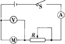 在研究微型電動機的性能時,應用如圖所示的實驗電路.調節(jié)滑動變阻器R并控制電動機停止轉動時,電流表和電壓表的示數(shù)分別為1.0 A和2.0 V.重新調節(jié)R并使電動機恢復正常運轉,此時電流表和電壓表的示數(shù)分別為2.0 A和16.0 V.則這臺電動機正常運轉時輸出功率為