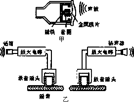 動(dòng)圈式話筒和磁帶錄音機(jī)都應(yīng)用了電磁感應(yīng)現(xiàn)象,如圖甲是話筒原理圖,圖乙是錄、放原理圖.由圖可知
