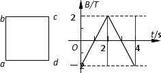 矩形導(dǎo)線框abcd放在勻強(qiáng)磁場(chǎng)中,磁感線方向與線圈平面垂直,磁感應(yīng)強(qiáng)度B隨時(shí)間變化的圖象如圖所示.t=0時(shí)刻,磁感應(yīng)強(qiáng)度的方向垂直于紙面向里.在0∽4 s時(shí)間內(nèi),線框的ab邊受力隨時(shí)間變化的圖象(ab邊所受安培力的方向規(guī)定以向左為正方向),可能是下圖中的