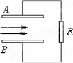 如圖所示為一磁流體發(fā)電機示意圖,A、B是平行正對的金屬板,等離子體(電離的氣體,由自由電子和陽離子構(gòu)成,整體呈電中性)從左側(cè)進入,在t時間內(nèi)有n個自由電子落在B板上,則關于R中的電流大小及方向判斷正確的是