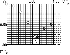 如圖所示,有人對(duì)“利用頻閃照相研究平拋運(yùn)動(dòng)規(guī)律”裝置進(jìn)行了改變,在裝置兩側(cè)都裝上完全相同的斜槽A、B,但位置有一定高度差,白色與黑色的兩個(gè)相同的小球都由斜槽某位置靜止開始釋放.實(shí)驗(yàn)后對(duì)照片做一定處理并建立直角坐標(biāo)系,得到如圖所示的部分小球位置示意圖.根據(jù)部分小球位置示意圖,下列說法正確的是(g=10 m/s2)
