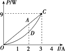 如圖所示,直線OAC為某一直流電源的總功率PE隨電流I變化的圖線,拋物線ODC為同一直流電源內(nèi)部放熱功率Pr隨電流I變化的圖線,若A、D對應的橫坐標為2 A,則下面說法不正確的是