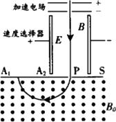 下圖是質(zhì)譜儀的工作原理示意圖,帶電粒子被加速電場(chǎng)加速后,進(jìn)入速度選擇器.速度選擇器內(nèi)互相垂直的勻強(qiáng)磁場(chǎng)和勻強(qiáng)電場(chǎng)的強(qiáng)度分別為B和E.擋板S上有可讓粒子通過的狹縫P和記錄粒子位置的膠片A1A2.平板S下方有強(qiáng)度為B0的勻強(qiáng)磁場(chǎng).下列表述正確的是