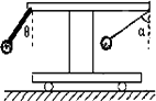 角與橫桿固定,下端連接一小鐵球,橫桿右邊用一根細線吊一小鐵球,當(dāng)小車向右做加速運動時,細線保持與豎直方向成α角,若