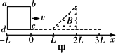 如圖甲所示,有一個(gè)等腰直角三角形的勻強(qiáng)磁場區(qū)域,其直角邊長為L,磁場方向垂直紙面向外,磁感應(yīng)強(qiáng)度大小為B.一邊長為L、總電阻為R的正方形導(dǎo)線框abcd,從圖示位置開始沿X軸正方向以速度v勻速穿過磁場區(qū)域.取沿a→b→c→d的感應(yīng)電流為正,則圖ABCD中表示線框中電流i隨x邊的位置坐標(biāo)X變化的圖象正確的是