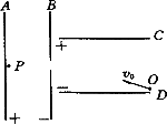 如圖所示,C、D兩水平帶電平行金屬板間的電壓為U,A、B為一對豎直放置的帶電平行金屬板,B板上有一小孔,小孔在C、D兩板間的中心線上.一質(zhì)量為m、帶電量為+q的粒子(不計重力)從D板邊緣的O點以速度v0斜向射入C、D板間,穿過B板的小孔運動到緊靠A板的P點時速度恰好為零,則A、B兩板間的電壓為