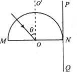 為直徑MN的垂線.足夠大的光屏PQ緊靠玻瑞磚右側(cè)且垂直于MN.由A、B兩種單色光組成的一束光沿半徑方向射向O點(diǎn),入射光線與O