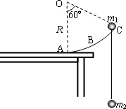 如圖所示,圓心在O點(diǎn)、半徑為R的光滑圓弧軌道ABC豎直固定在水平桌面上,OC與OA的夾角為60°,軌道最低點(diǎn)A與桌面相切.一足夠長的輕繩兩端分別系著質(zhì)量為m1和m2的兩小球(均可視為質(zhì)點(diǎn)),掛在圓弧軌道光滑邊緣C的兩邊,開始時(shí)m1位于C點(diǎn),然后從靜止釋放.則