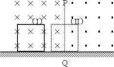 在光滑的水平面上方,有兩個(gè)磁感應(yīng)強(qiáng)度大小均為B,方向相反的水平勻強(qiáng)磁場(chǎng),如圖.PQ為兩個(gè)磁場(chǎng)的邊界,磁場(chǎng)范圍足夠大.一個(gè)邊長(zhǎng)為a、質(zhì)量為m、電阻為R的金屬正方形線框,以速度v垂直磁場(chǎng)方向從如圖實(shí)線(Ⅰ)位置開始向右運(yùn)動(dòng),當(dāng)線框運(yùn)動(dòng)到分別有一半面積在兩個(gè)磁場(chǎng)中的如圖(Ⅱ)位置時(shí),線框的速度為v/2,則下列說法正確的是