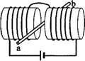 如圖所示,兩個端面半徑同為R的圓柱形鐵芯同軸水平放置,相對的端面之間有一縫隙,鐵芯上繞導線并與電源連接,在縫隙中形成一勻強磁場.一銅質細直棒ab水平置于縫隙中,且與圓柱軸線等高、垂直.讓銅棒從靜止開始自由下落,銅棒下落距離為0.2R時銅棒中電動勢大小為E1,下落距離為0.8R時電動勢大小為E2.忽略渦流損耗和邊緣效應.關于E1、E2的大小和銅棒離開磁場前兩端的極性,下列判斷正確的是