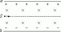如圖所示,a、b是位于真空中的平行金屬板,a板帶正電,b板帶負電,兩板間的電場為勻強電場,場強為E,同時在兩板之間的空間中加勻強磁場,磁場方向垂直于紙面向里,磁感應強度為B,一束電子以大小為V0的速度從左邊S處沿圖中虛線方向入射,虛線平行于兩板,要想使電子在兩板間能沿虛線運動,則V0、E、B之間的關系應該是