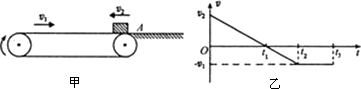 如下圖所示,繃緊的水平傳送帶始終以恒定速率v1運行,初速度大小為v2的小物塊從與傳送帶等高的光滑水平地面上的A處滑上上傳送帶,若從小物塊滑上傳送帶開始計時,小物塊在傳送帶上運動的v-t圖象(以地面為參考系)如圖乙所示.已知v2>v1,則