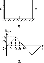 粗糙絕緣的水平地面上,有兩塊豎直平行相對(duì)而立的金屬板A、B板間地面上靜止著帶正電的物塊,如圖甲所示,當(dāng)兩金屬板加圖乙所示的交變電壓時(shí),設(shè)直到t1時(shí)刻物塊才開始運(yùn)動(dòng),(最大靜摩擦力與動(dòng)摩擦力可認(rèn)為相等),則: