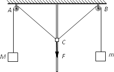 如圖所示,光滑細(xì)桿豎直固定在天花板上,定滑輪A、B關(guān)于桿對(duì)稱,輕質(zhì)圓環(huán)C套在細(xì)桿上,通過細(xì)線分別與質(zhì)量為M、m(M>m)的物塊相連.現(xiàn)將圓環(huán)C在豎直向下的外力F作用下緩慢向下移動(dòng),滑輪與轉(zhuǎn)軸間的摩擦忽略不計(jì).則在移動(dòng)過程中