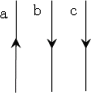 在同一平面上有a、b、c三根等間距平行放置的長(zhǎng)直導(dǎo)線,依次載有電流強(qiáng)度為1安、2安和3安的電流,各電流的方向如圖所示.則導(dǎo)線a所受的合力方向向________,導(dǎo)線b所受的合力方向向________.