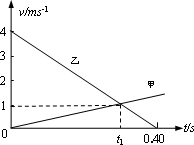 兩物體甲和乙在同一直線上運(yùn)動(dòng),它們?cè)?~0.4 s時(shí)間內(nèi)的v-t圖象如圖所示.若僅在兩物體之間存在相互作用,則物體甲與乙的質(zhì)量之比是________,圖中時(shí)間t1是________.