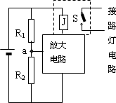 光敏電阻是由半導(dǎo)體材料制成的,受到光照射時(shí),其導(dǎo)電性能顯著增強(qiáng).將其與電磁繼電器組合,就可用來自動(dòng)控制街道路燈的開與關(guān).下圖中所示是自動(dòng)控制路燈的工作原理圖,當(dāng)光照暗到一定程度時(shí),路燈能點(diǎn)亮.電阻R1、R2之一為光敏電阻,另一為定值電阻.當(dāng)放大電路的輸入a端電壓升高至某一值時(shí),使經(jīng)過繼電器J的電流增大到受繼電器J控制的電鍵S閉合,路燈就點(diǎn)亮.則________是光敏電阻,若要提高電路的靈敏度,則________(增大或減小)定值電阻的阻值.