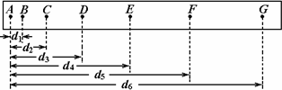 在做“研究勻變速直線運(yùn)動(dòng)”的實(shí)驗(yàn)時(shí),某同學(xué)得到一條用打點(diǎn)計(jì)時(shí)器打下的紙帶如圖所示,并在其上取了A、B、C、D、E、F、G等7個(gè)計(jì)數(shù)點(diǎn),每相鄰兩個(gè)計(jì)數(shù)點(diǎn)間還有4個(gè)點(diǎn),圖中沒(méi)有畫出,打點(diǎn)計(jì)時(shí)器接周期為T=0.02 s的交流電源.他經(jīng)過(guò)測(cè)量得到各點(diǎn)到A點(diǎn)的距離如圖