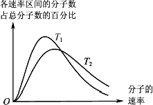 密閉在鋼瓶中的理想氣體,溫度升高時(shí)壓強(qiáng)增大.從分子動(dòng)理論的角度分析,這是由于分子熱運(yùn)動(dòng)的________增大了.該氣體在溫度T1、T2時(shí)的分子速率分布圖象如圖所示,則T1________(選填“大于冶或“小于冶)T2.