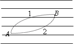 如圖所示,水平平行線代表電場(chǎng)線,但未指明方向,帶電量為10-8C的正電微粒,在電場(chǎng)中只受電場(chǎng)力的作用,由A運(yùn)動(dòng)到B,動(dòng)能損失2×10-4 J,A點(diǎn)的電勢(shì)為-2×103 V,則微粒運(yùn)動(dòng)軌跡是虛線________(填“1”或“2”),B點(diǎn)的電勢(shì)為________V.