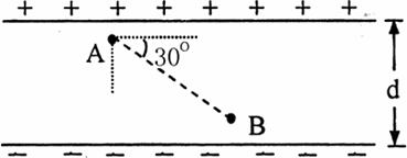 圖中是一個平行板電容器,其電容為C,兩板間距離為d,帶電量為Q,上極板帶正電.現將一個試探電荷q由兩極板間的A點移動到B點,如圖所示.A、B兩點間的距離為S,連線AB與極板間的夾角為30°,則電場力對試探電荷q所做的功等于________.