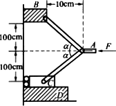 某壓榨機的結構如圖所示,其中B為固定絞鏈,C為質量可忽略不計的滑塊,通過滑輪可沿光滑壁移動,D為被壓榨的物體.當在鉸鏈A處作用一垂直于壁的壓力F時,物體D所受的壓力等于________.