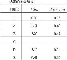 (2)圖是鉤碼質(zhì)量為0.03 kg,砝碼質(zhì)量為0.02 kg時得到的一條紙帶,在紙帶上選擇起始點0及A、B、C、D和E五個計數(shù)點,可獲得各計數(shù)點到0的距離5及對應時刻小車的瞬時速度v,請將C點的測量結(jié)果填在下表中的相應位置.