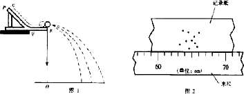 1所示裝置通過半徑相同的A、B兩球的碰撞來驗(yàn)證動(dòng)量守恒定律,圖1中PQ是斜槽,QR為水平槽,實(shí)驗(yàn)時(shí)先使A球從斜槽上某一固定位置G由靜止開始滾下,落到位于水平地面的記錄紙上,留下痕跡,重復(fù)上述操作10次,得到10個(gè)落點(diǎn)痕跡,再把B球放在水平槽上靠近槽末端的地方,讓A球仍從位置G由靜止開始滾下,和B球碰撞后,A、B球分別在記錄紙上留下各自的落點(diǎn)痕跡,重復(fù)這種操作10次,圖1中O點(diǎn)是水平槽末端R在記錄紙上的垂直投影點(diǎn),B球落點(diǎn)痕跡如圖2所示,其中米尺水平放置,且平行于G、R、O所在的平面,米尺的零點(diǎn)與O點(diǎn)對(duì)齊.(1)碰撞后B球的水平射程應(yīng)為________cm.