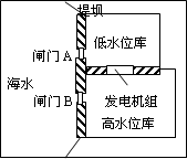________;落潮時閘門的開關(guān)情況是________.從能量的角度說,該電站是將海水的________轉(zhuǎn)化為水輪機的動能,再推動發(fā)電機發(fā)電.查看答案和解析>>
