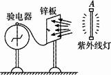 如圖所示,一驗(yàn)電器與鋅板相連,在A處用一紫外線燈照射鋅板,關(guān)燈后,指針保持一定偏角.
