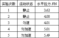 某同學(xué)在探究摩擦力的實(shí)驗(yàn)中采取了如圖所示的操作,將一個(gè)長(zhǎng)方體木塊放在水平桌面上,然后用一個(gè)力傳感器對(duì)木塊施加一個(gè)水平拉力F,并用另外一個(gè)傳感器對(duì)木塊的運(yùn)動(dòng)狀態(tài)進(jìn)行監(jiān)測(cè),下表是她記錄的實(shí)驗(yàn)數(shù)據(jù).木塊的重力為10.00 N,重力加速度g=9.80 m/s2,根據(jù)表格中的數(shù)據(jù)回答下列問題(答案保留3位有效數(shù)字):