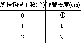 某同學(xué)在用如圖所示的裝置探究彈簧彈力與伸長(zhǎng)量的關(guān)系時(shí),測(cè)得彈簧的長(zhǎng)度與所掛鉤碼的個(gè)數(shù)如下表所示,請(qǐng)?zhí)畛霰碇孝佗谒表?xiàng).(彈簧在彈性限度內(nèi),每個(gè)鉤碼質(zhì)量相同)