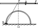 如圖所示,半徑為0.3 m的光滑半圓形細(xì)軌道豎直固定在地面上,圓心為O.軌道正上方離地0.4 m處固定一水平長直光滑桿,桿與軌道在同一豎直平面內(nèi).A、B為質(zhì)量均為2 kg的小環(huán),A套在桿上,B套在軌道上,一條不可伸長的細(xì)繩,繞過固定在桿上P點(diǎn)、可繞水平軸自由轉(zhuǎn)動的定滑輪將兩環(huán)連接起來,P點(diǎn)在O點(diǎn)的正上方.兩環(huán)均可看作質(zhì)點(diǎn),且不計滑輪大小.在環(huán)A上施加一個大小為55 N的水平向右恒力F,使B從地面由靜止沿軌道上升,在B上升到最高點(diǎn)的過程中該恒力做功為________J,B被拉到最高點(diǎn)時的速度大小為________m/s.