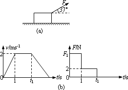 一物塊靜置于水平面上,現(xiàn)用一與水平方向成37°角的拉力F使物體開始運動,如圖(a)所示.其后一段時間內(nèi)拉力F和物體運動的速度隨時間變化的圖像如圖(b)所示,已知物塊的質(zhì)量為1.32 kg,根據(jù)圖像可求得:0~1 s內(nèi)拉力的大小為________N,物塊減速運動的距離為________m.(sin37°=0.6,cos37°=0.8)