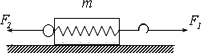 一個彈簧秤放在光滑的水平面上,外殼質量為m,彈簧及掛鉤質量不計,施加水平方向的力F1、F2,且F1>F2則彈簧秤沿水平方向的加速度為________,彈簧秤的讀數為________.