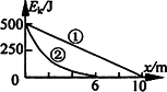 自動充電式電動車的前輪裝有發(fā)電機,發(fā)電機與蓄電池連接.騎車者用力蹬車或電動車自動滑行時,發(fā)電機向蓄電池充電,將其他形式的能轉化成電能儲存起來.現(xiàn)使車以500 J的初動能在粗糙的水平路面上自由滑行,第一次關閉自充電裝置,其動能隨位移變化關系如圖線①所示;第二次啟動自充電裝置,其動能隨位移變化關系如圖線②所示,則第二次向蓄電池所充的電能是________J.